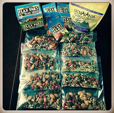 Vacation time!!! Finishing up packing for our ski trip to aspen (the whole fam is super excited!!) and so I packed homemade portion sized trail mix baggies for when my hubby and I get hungry on the slopes...plus I can't really go anywhere without my flax seed and chia seeds! I found these perfect individually portioned flax paks on Amazon. Better get these into my suitcase, plane is leaving in a few hours! ~~~~~~~~My trail mix concoction: goji berries, mulberries, gooseberries, diced dried figs and apricots, raw almonds, pepitas, sunflower seeds, hemp seeds, crushed walnuts (basically it was whatever was left in my pantry!) each bag contains a 1/2 cup serving of trail mix. Planning on zipping these energy snacks in my ski jacket for when I'm on the go! ✈️🎿🏂🍠🍑