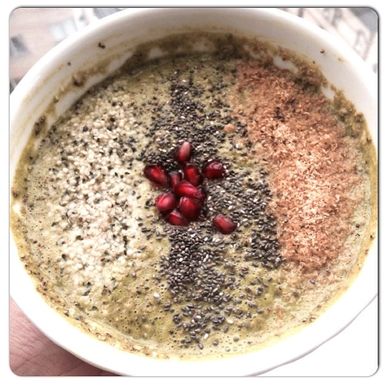 Pomegranate + Cacao Smoothie aka My favorite Evening snack!! This is another version of my cacao and date smoothie and it's even more delicious! In blender combine: 1 c almond milk, 2 pitted dates, handful of pomegranate seeds, dash of cinnamon and 1 1/2 tbs cacao nibs and ice. Pour into cup and add in another small handful of pomegranate seeds and a sprinkle of cacao nibs. :::::::: I love adding in the whole seeds and nibs because although the drink fills me up, sometimes I just want to chew and not sip! The texture and crunchiness of the seeds and nibs makes this smoothie the perfect treat! Mid way through, I tossed the straw and used a spoon to finish it all up---YUMMO!!! ::::::P.S. This is a great option if u struggle with nighttime nibbling :)